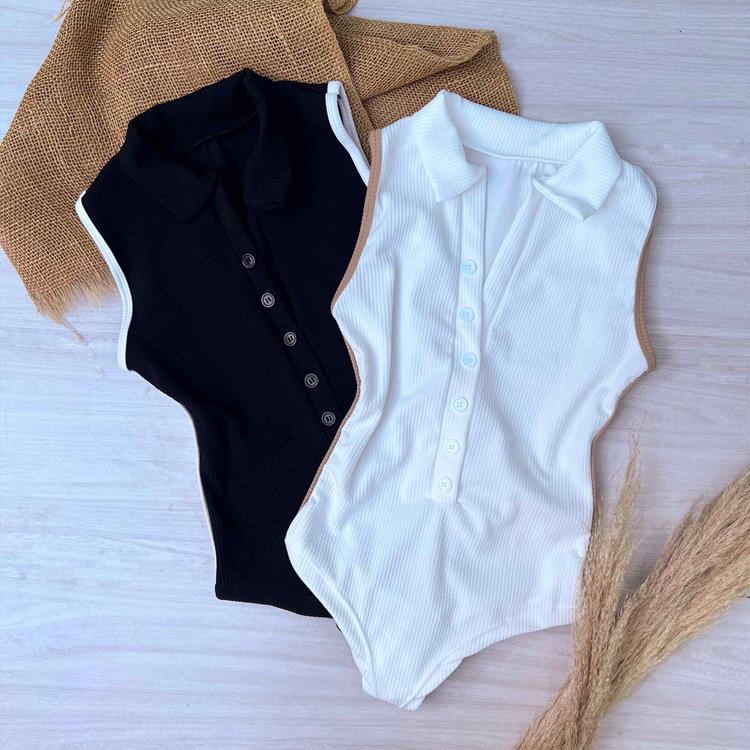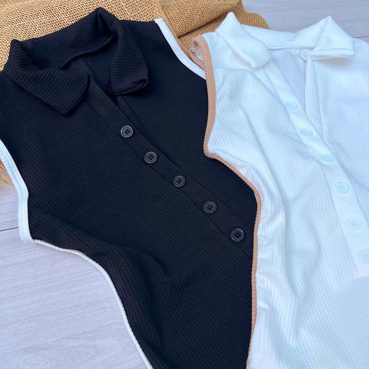 : malha anarruga, com botão inferior.