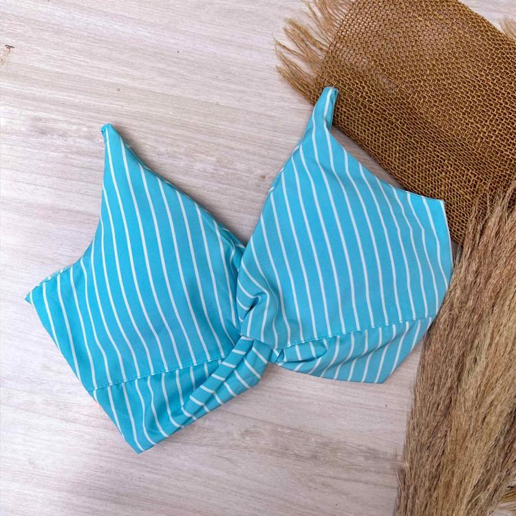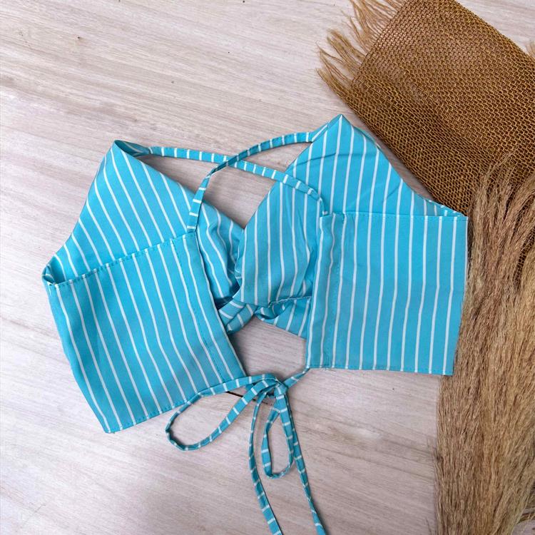 • Cropped com bojo e amarração atrás que ajusta ao corpo.