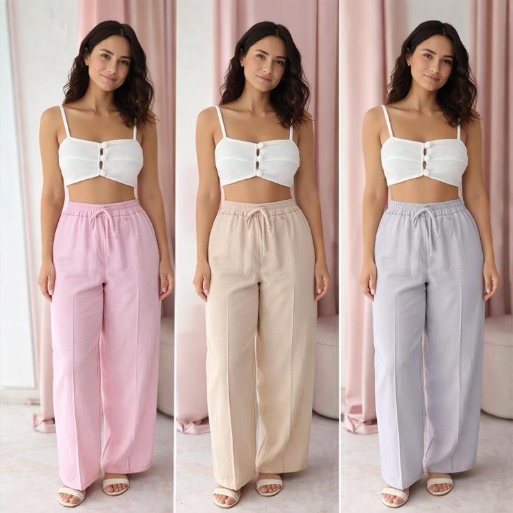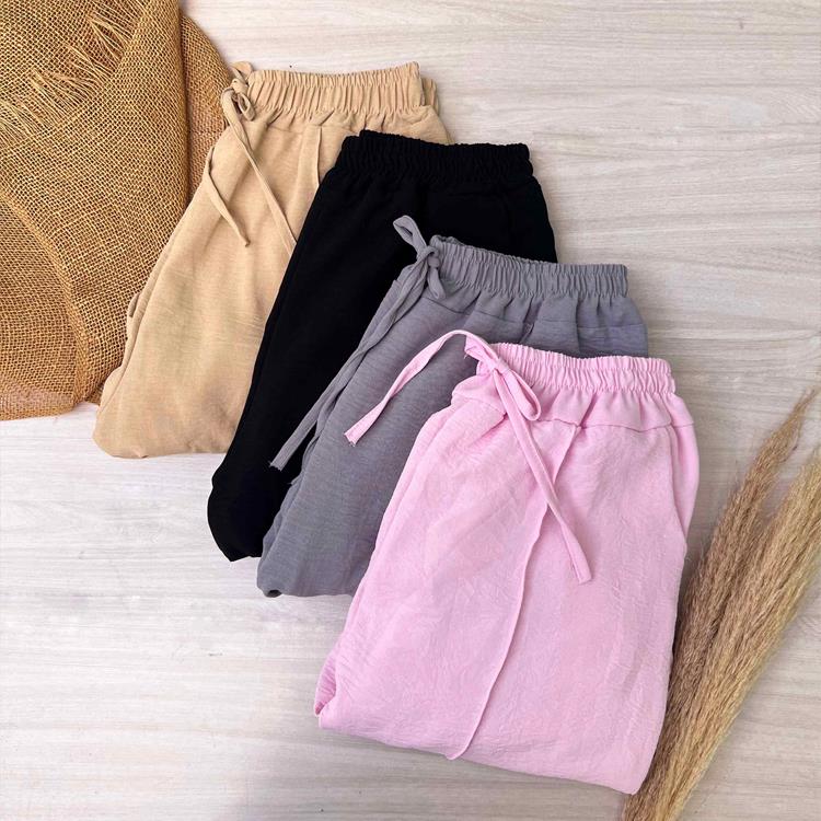 : crepe duna com elástico no cós.