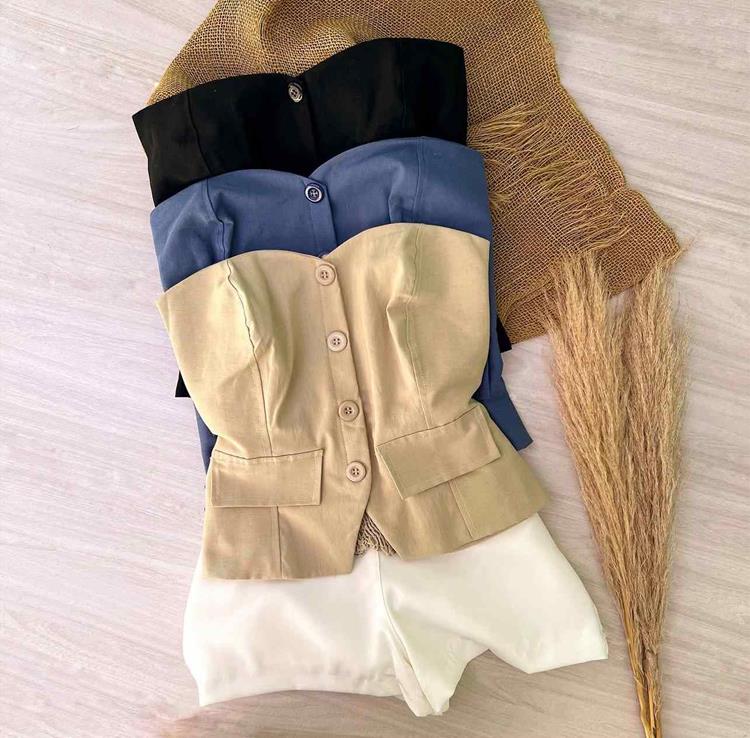 : Viscolinho com forro duplo no busto e elastex nas costas.